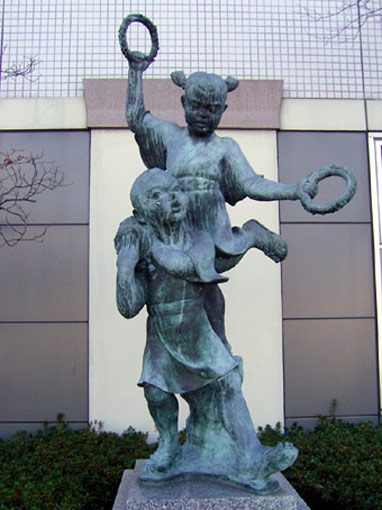 戸田海笛《喜怒哀楽の図》ブロンズレリーフ
