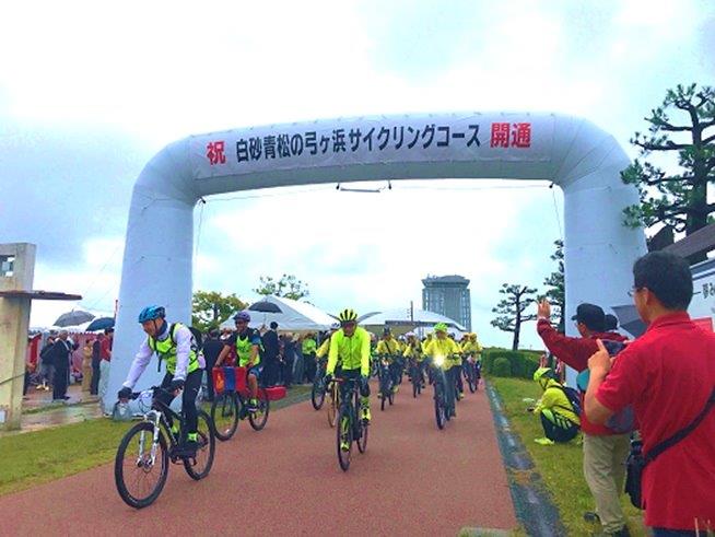当日は小雨の降るなか、大勢の参加があり、盛大に開通式を行ないました。参加者の中には香港、韓国など海外からの参加者もおられ、気持ちよくサイクリングコースを走っていただけました。
