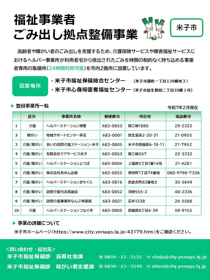 - 米子市福祉事業者ごみ出し拠点整備事業利用届出書を提出する。