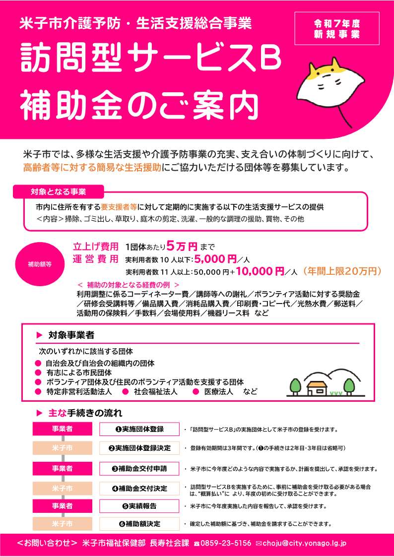 米子市介護予防・日常生活支援総合事業訪問型サービスB補助金交付要綱 (