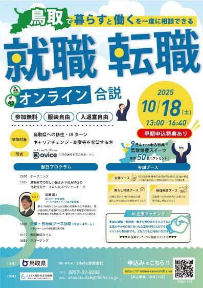 メール:shukatsulab@lifefix.co.jpふるさと鳥取県定住機構(鳥取窓口)