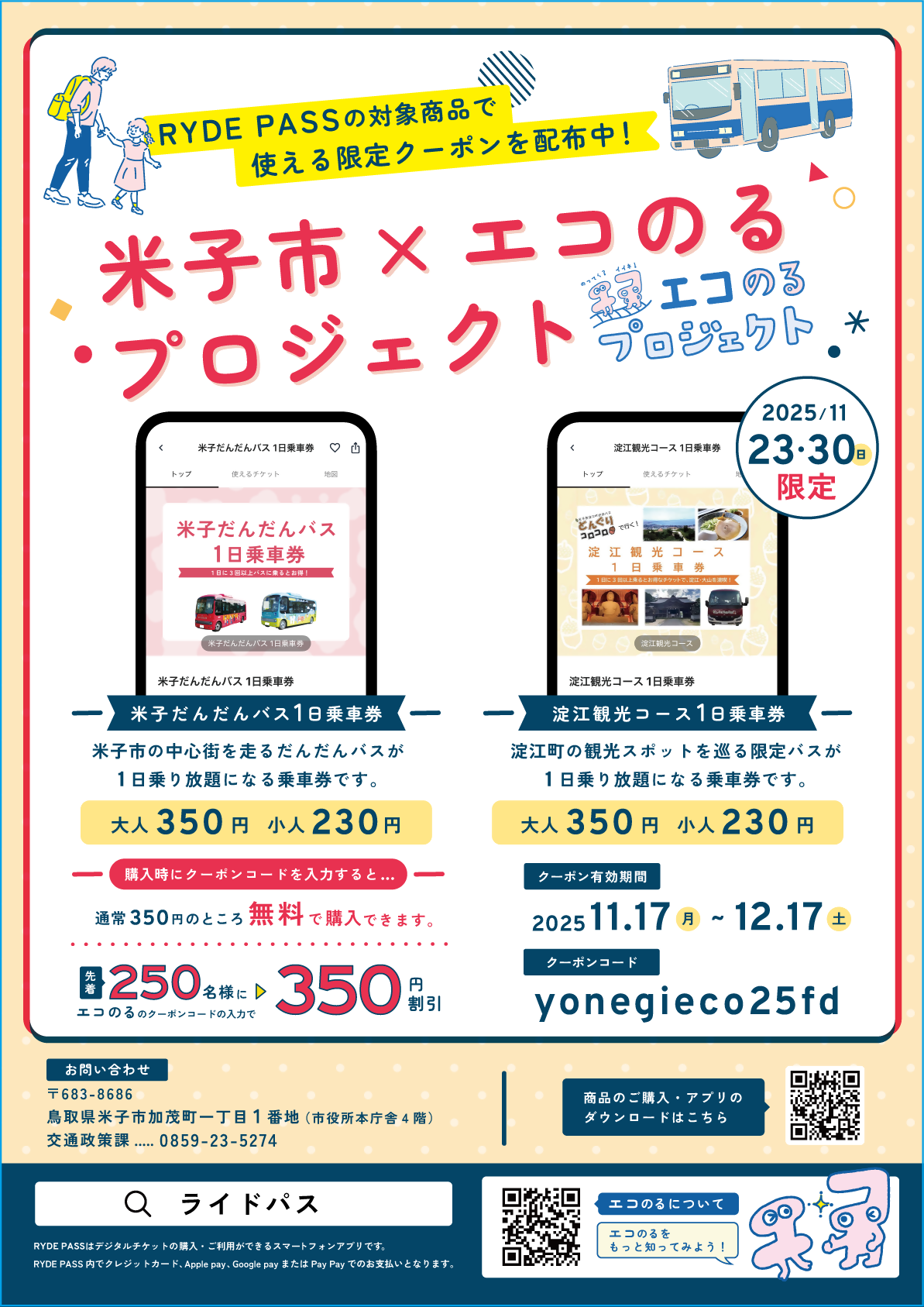 淀江観光コース 1日乗車券 ※2025年11月23日(日曜日)・11月30日(日曜日)限定‼