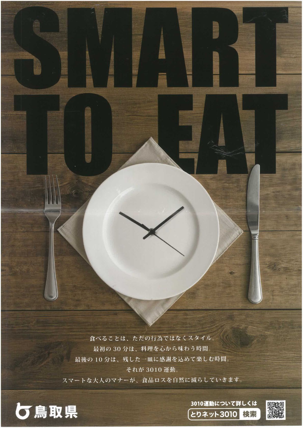 鳥取県では平成28年度から、食べ残しなど食品ロスの削減を図る啓発活動「おいしい!とっとり30・10(さんまる いちまる)食べきり運動」を実施しています。