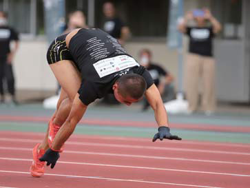 Ryuseiさんは、「最も速い100メートル四足走行」のギネス世界記録保持者です。今年9月に、どらドラパーク米子陸上競技場で記録に挑戦し、従来の世界記録を1秒以上更新する、14秒55の世界新記録を樹立しました。