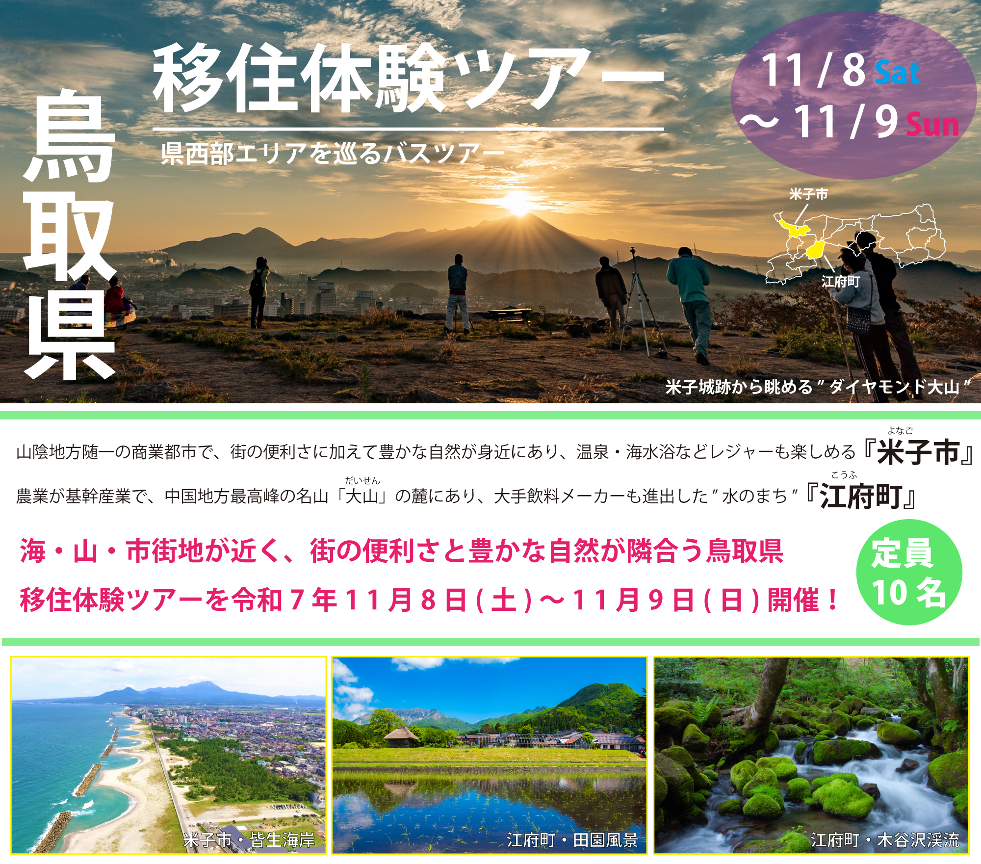 ※ご注意ください:ご自宅から鳥取県内の集合・解散場所までの交通費は、ご参加者様の自己負担となります。