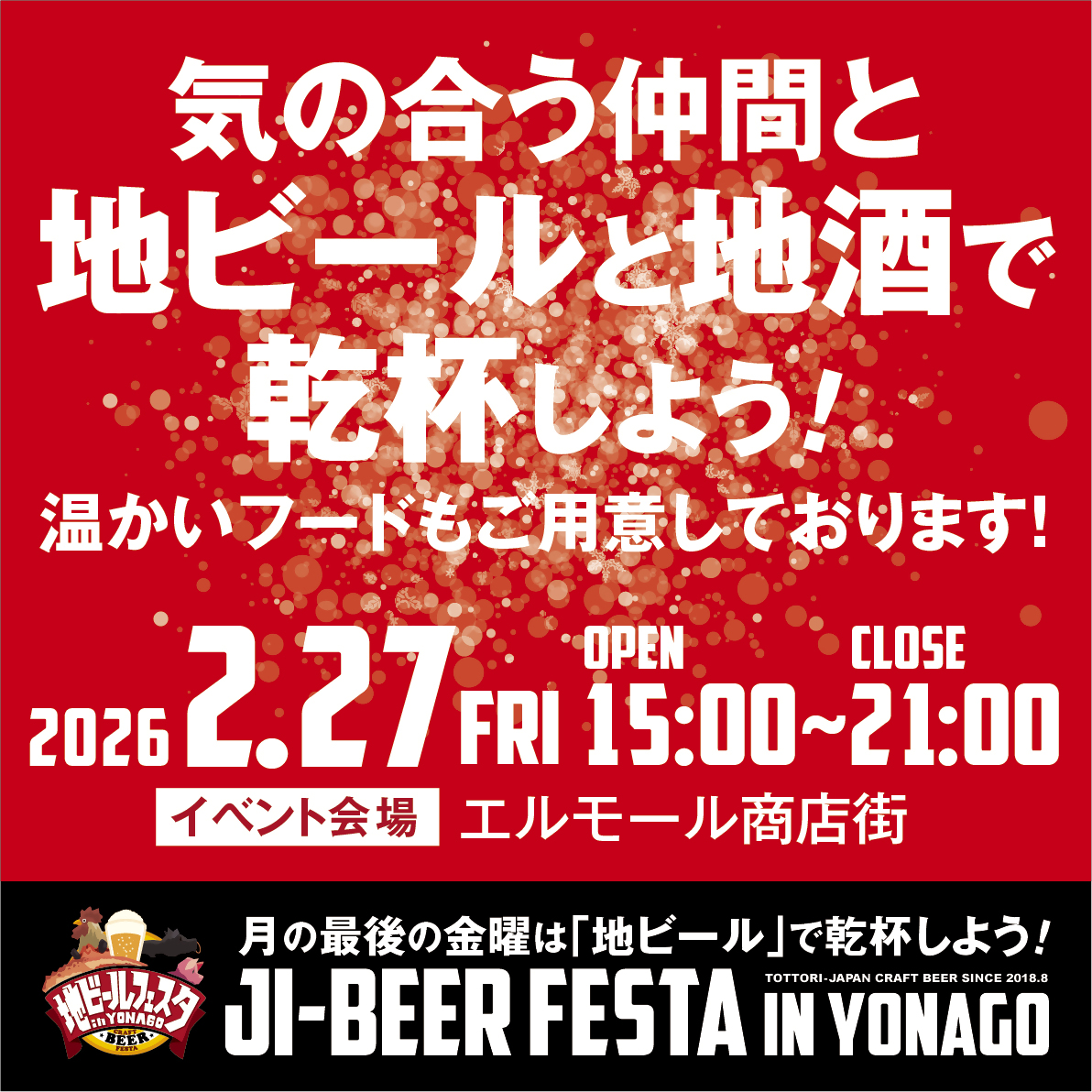 角盤町商店街振興組合による地域活性化イベント「地ビールフェスタin米子」が、える・もーる1番街にて開催されます。